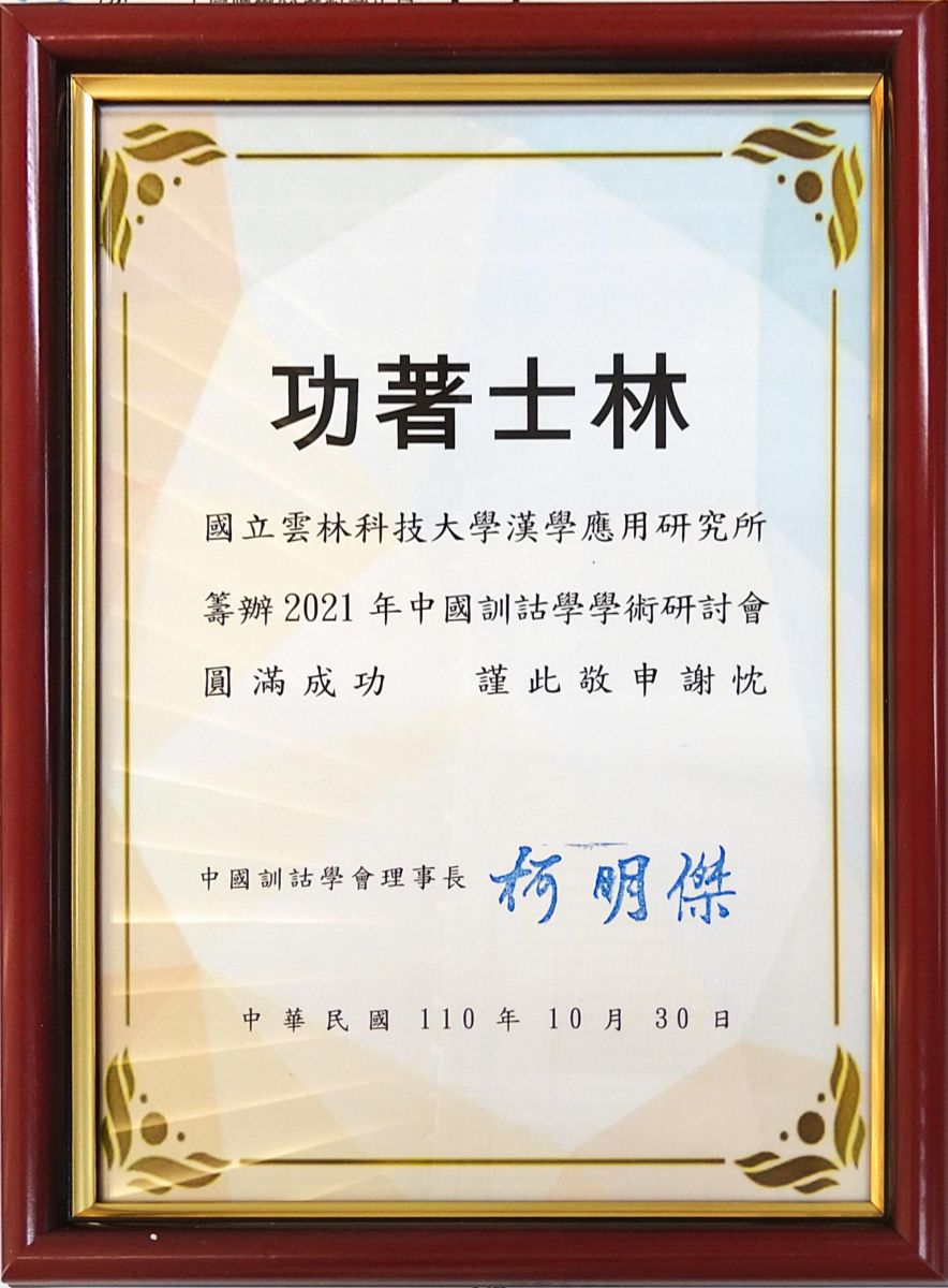 2021年10月主辦第十五屆中國訓詁學學術研討會