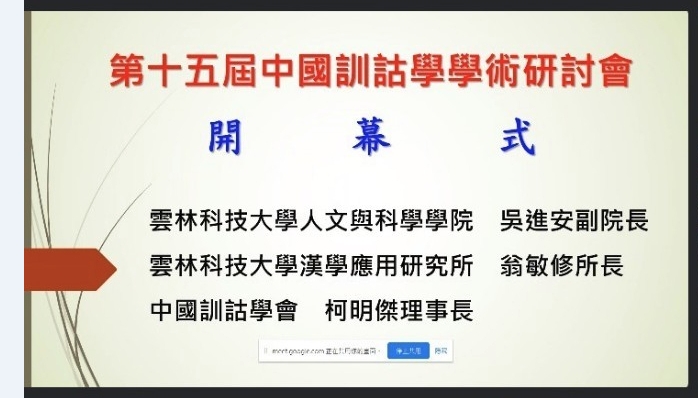 2021年10月30日,漢學所與中國訓詁學會共同主辦2021年中國訓詁學學術研討會(視訊會議)。